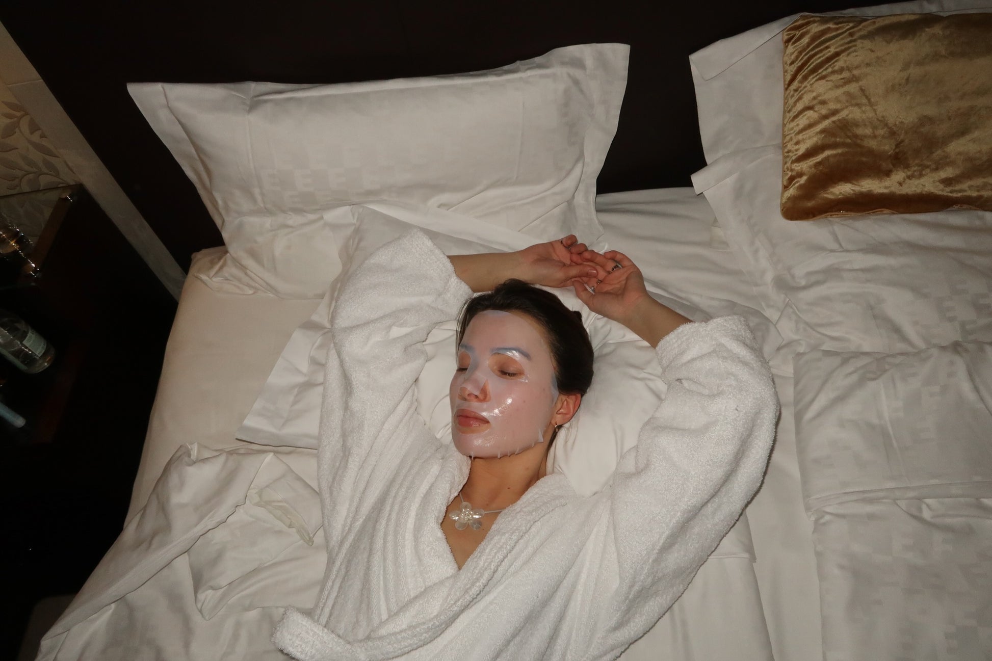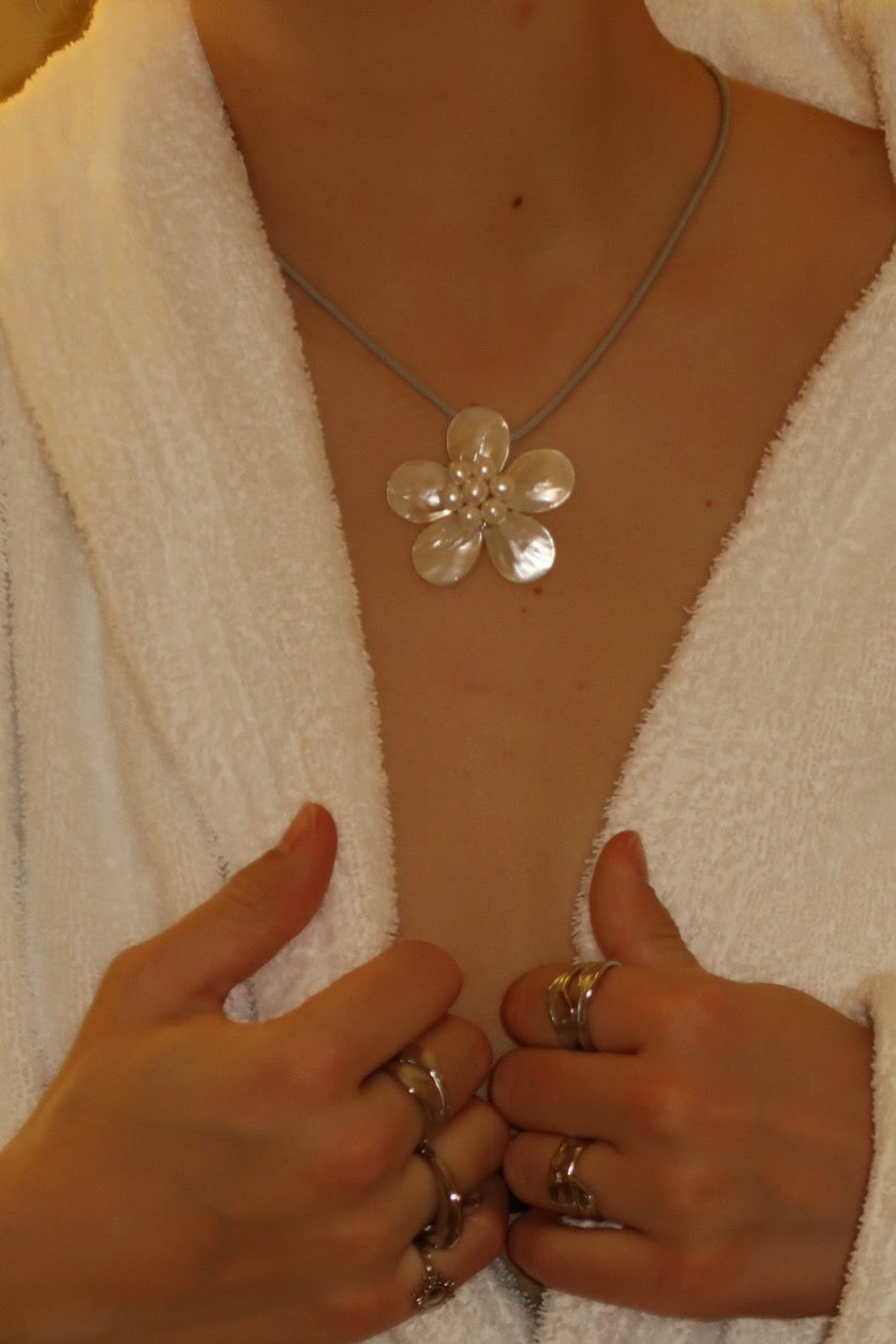 VINCA - FLOWER NECKLACE MADE OUT OF SHELL PEARLS WITH A COTTON BAND WATERPROOF