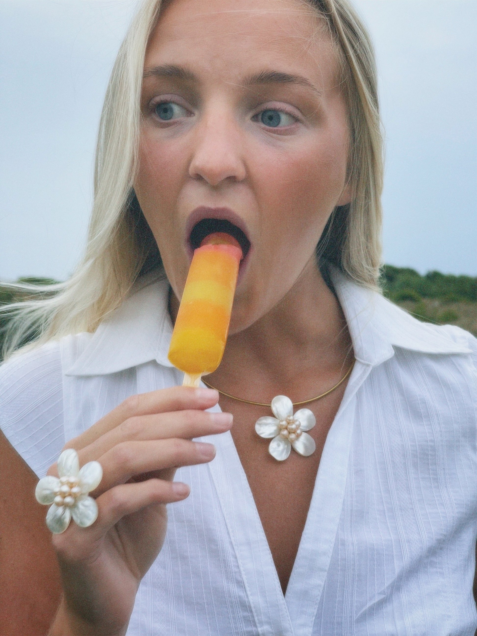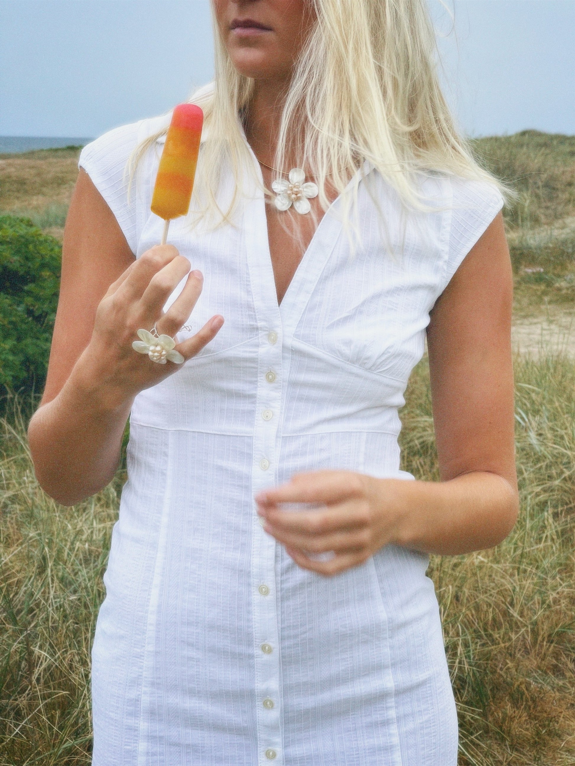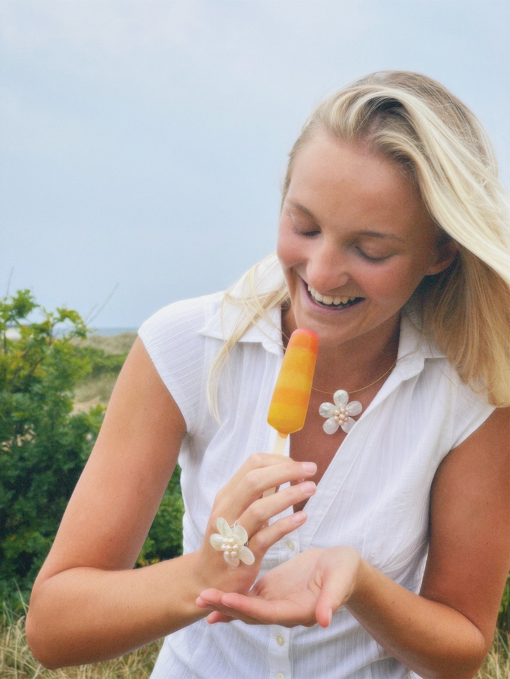 VINCA - FLOWER NECKLACE MADE OUT OF SHELL PEARLS WITH A SILVER NECKLACE WATERPROOF