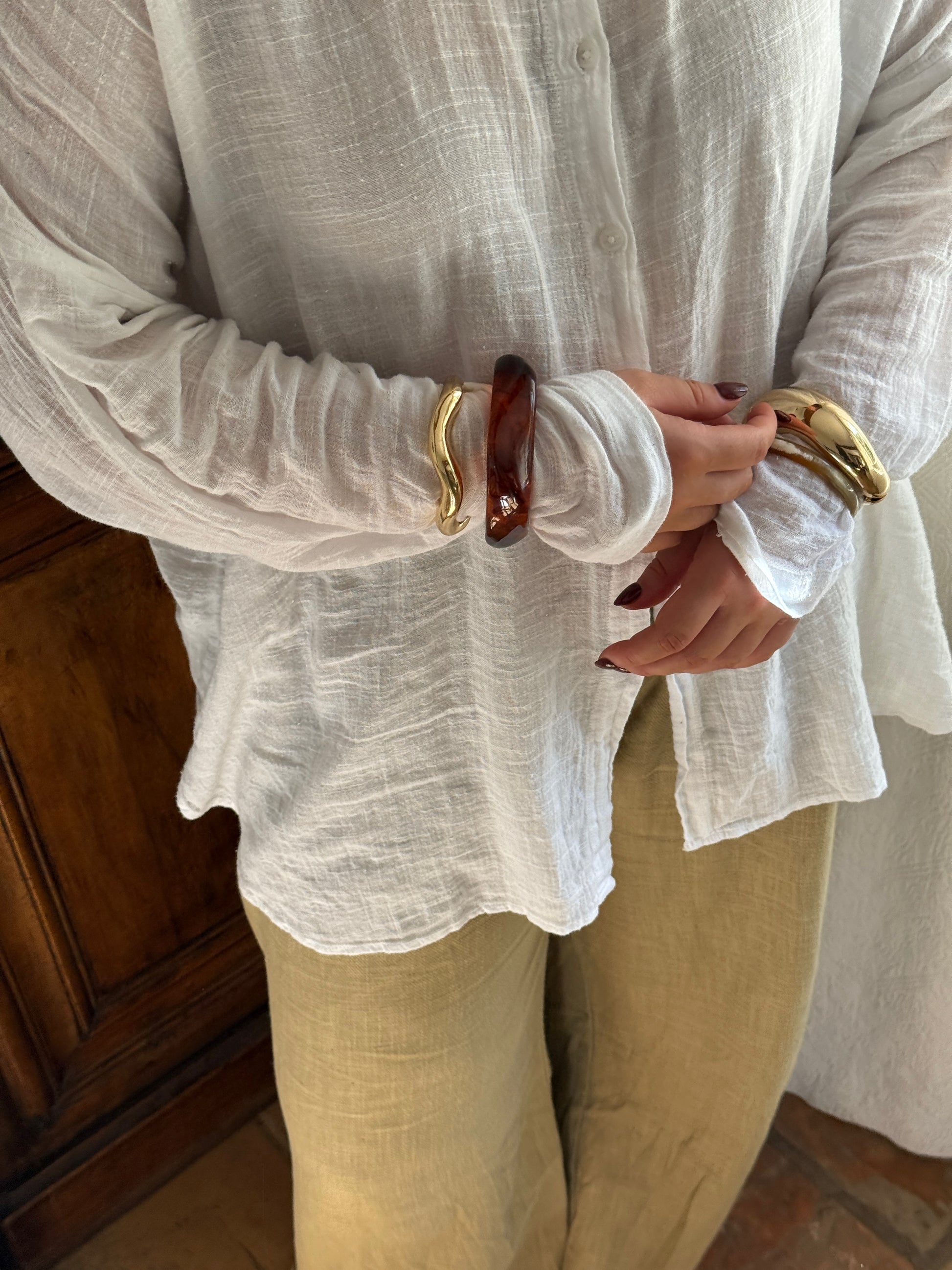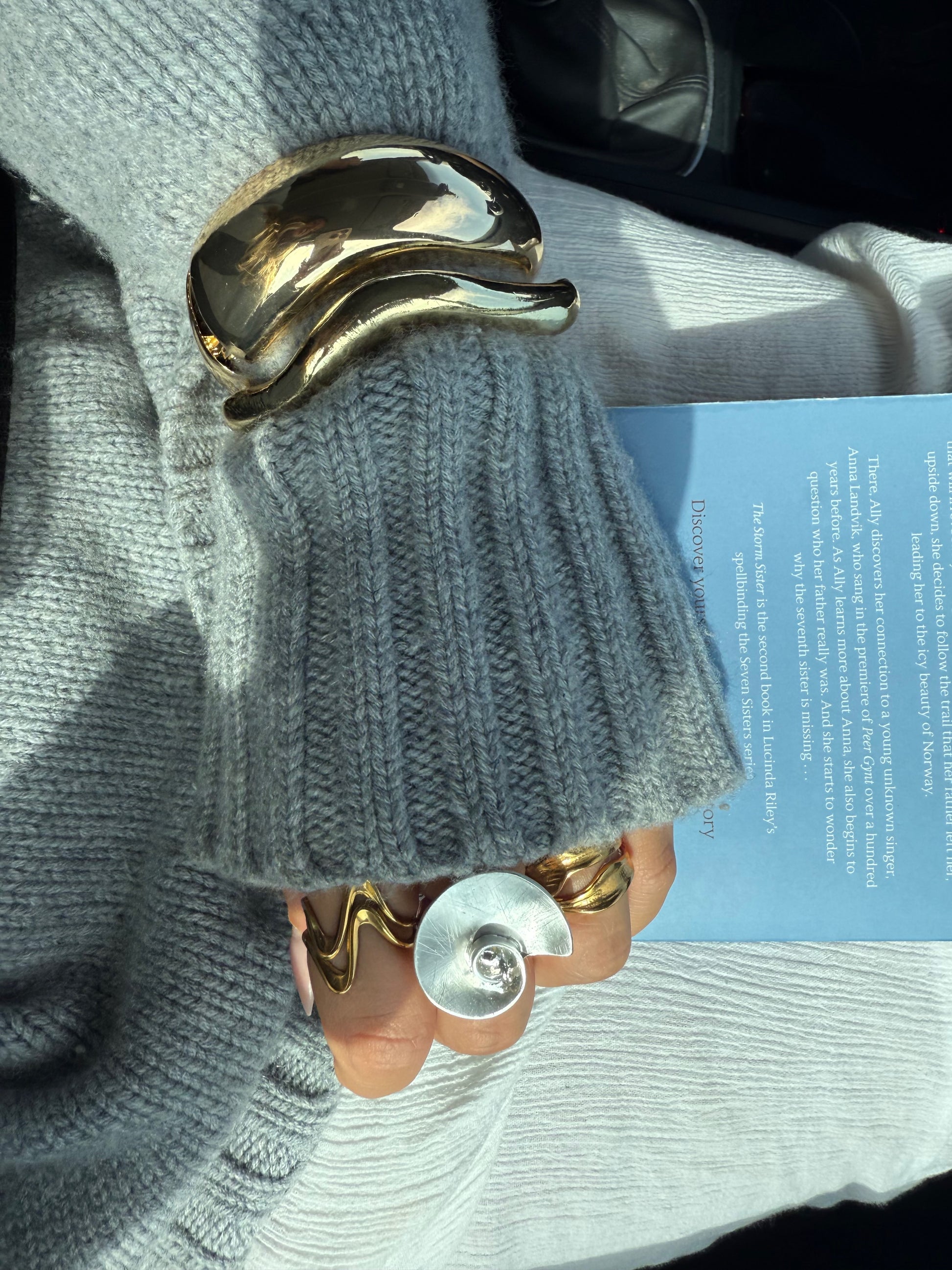 Elevate your style with this stunning bangle, crafted from premium stainless steel and finished with luxurious 18K gold plating. Designed to be fully waterproof and tarnish-resistant, it’s perfect for everyday elegance. Its bold, sculptural shape adds a modern edge to any outfit, making it an essential accessory for those who love effortless sophistication.