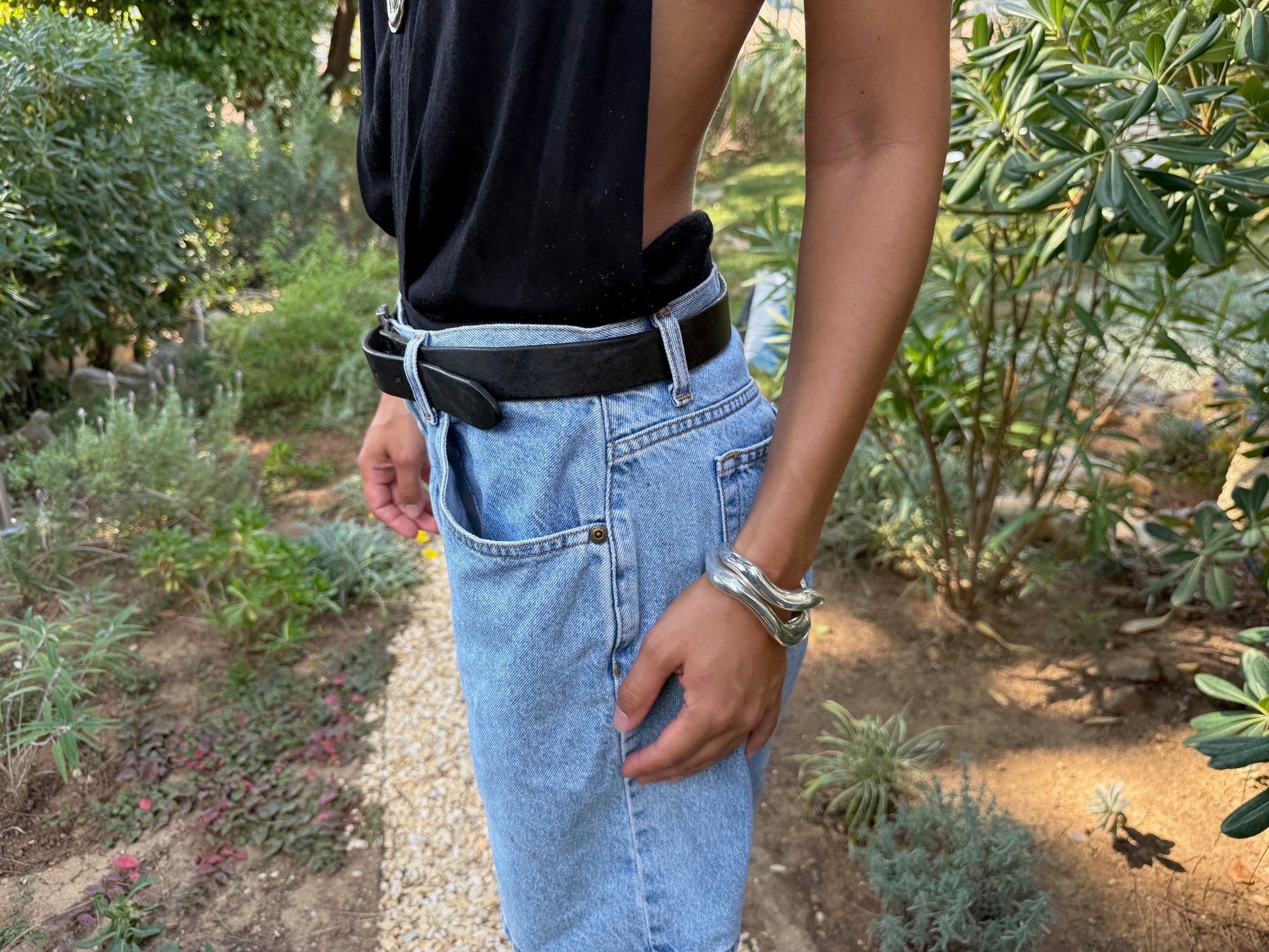 MENTHA - WAVY SILVER BANGLE WATERPROOF