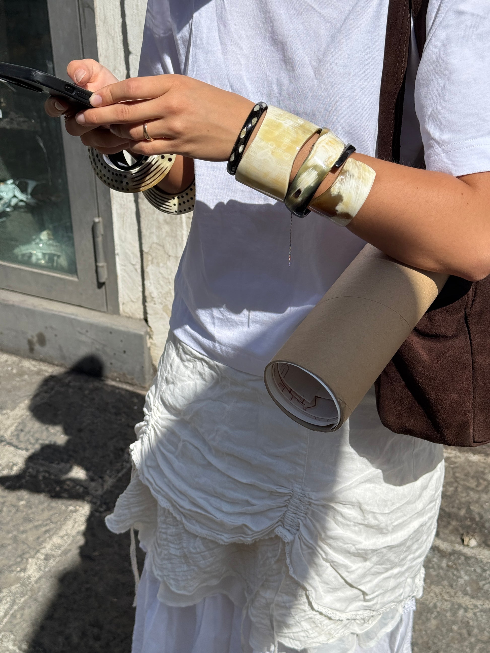 These handmade bangles are crafted from genuine buffalo horn, offering a lightweight, smooth finish with rich, natural tones. Each piece features unique color variations and organic patterns, so no two are exactly alike—your bangle will be one of a kind.