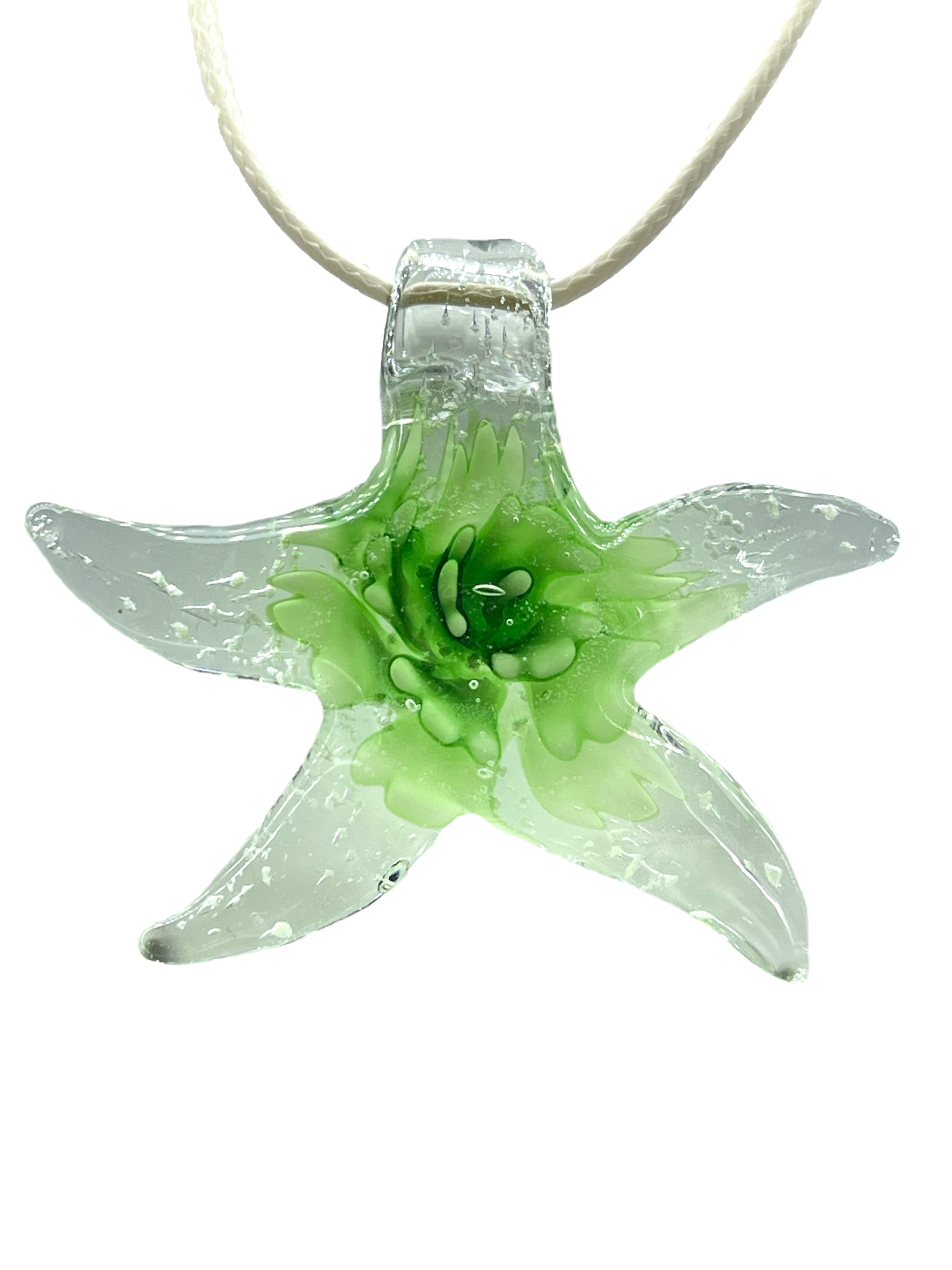 OLIVIA - STARFISH GLASS PENDANT IN GREEN WITH A COTTON BAND
