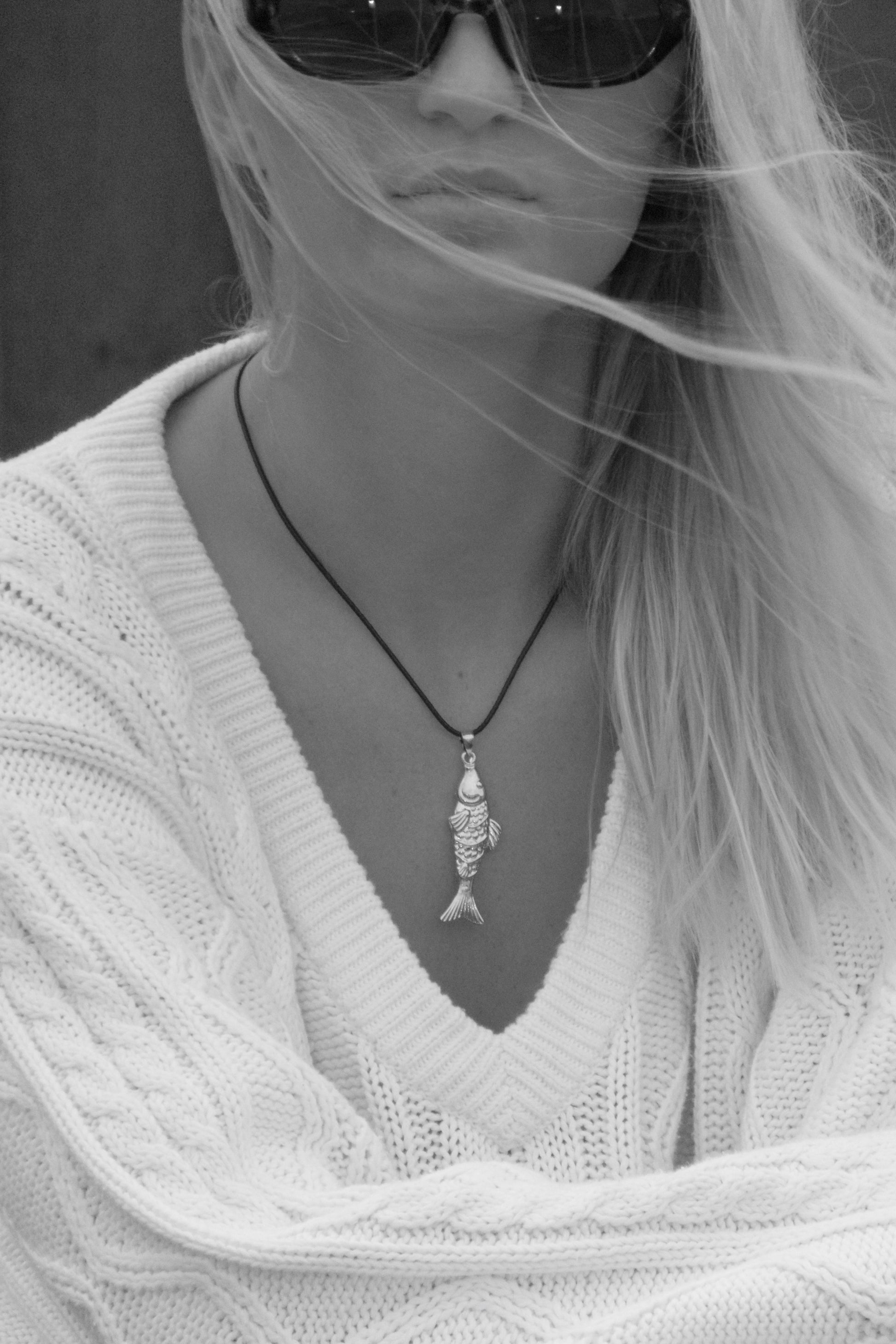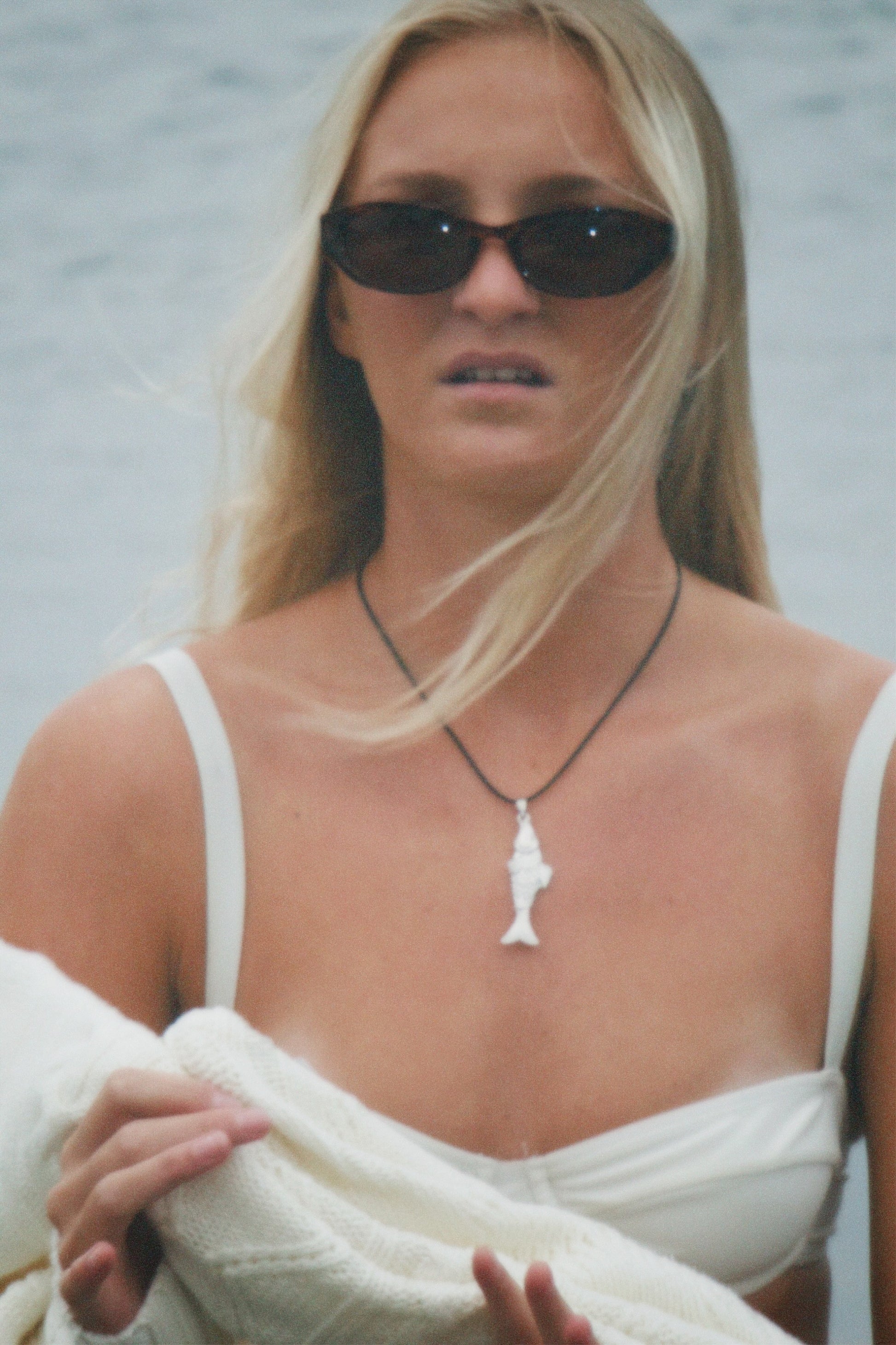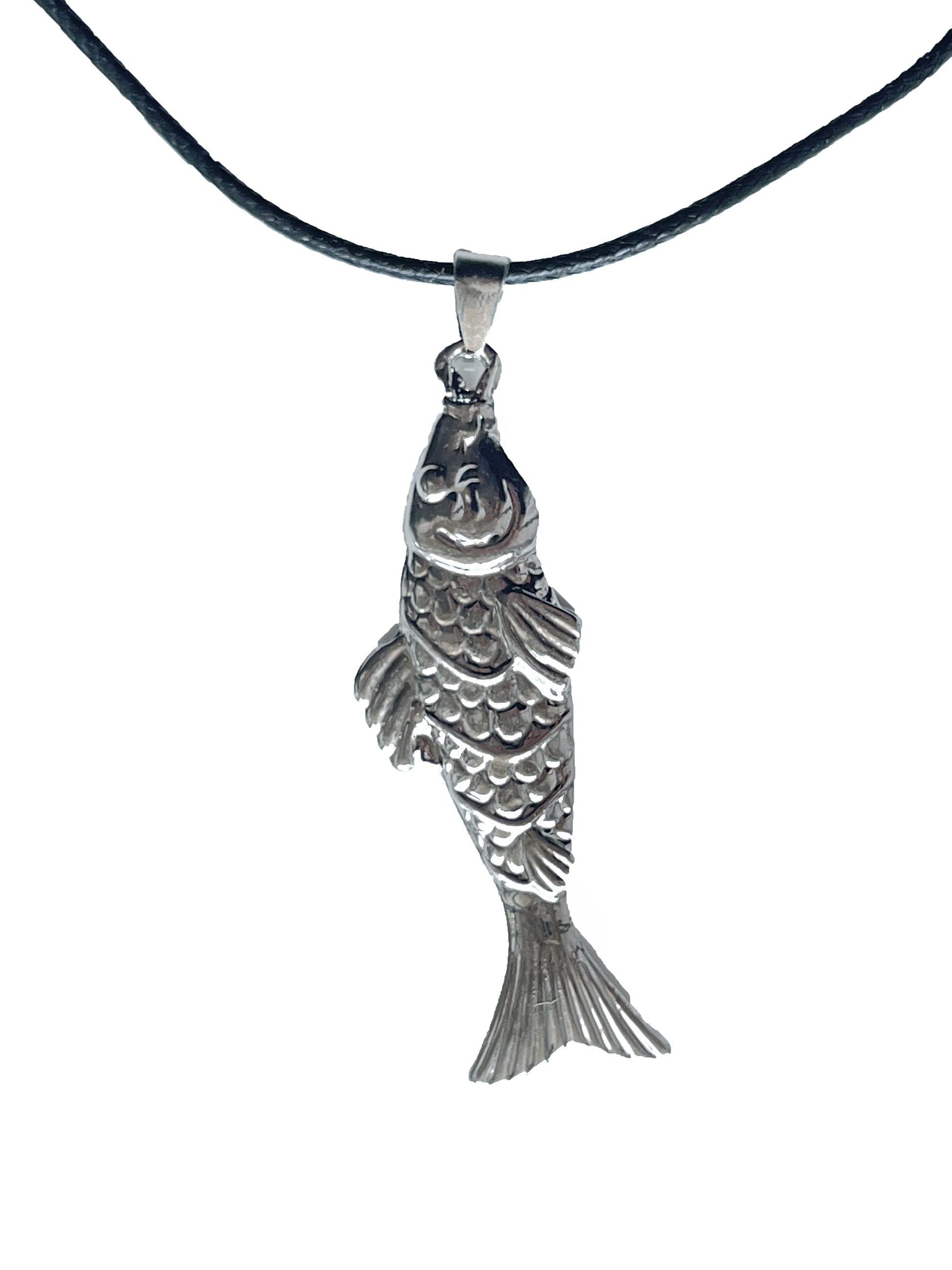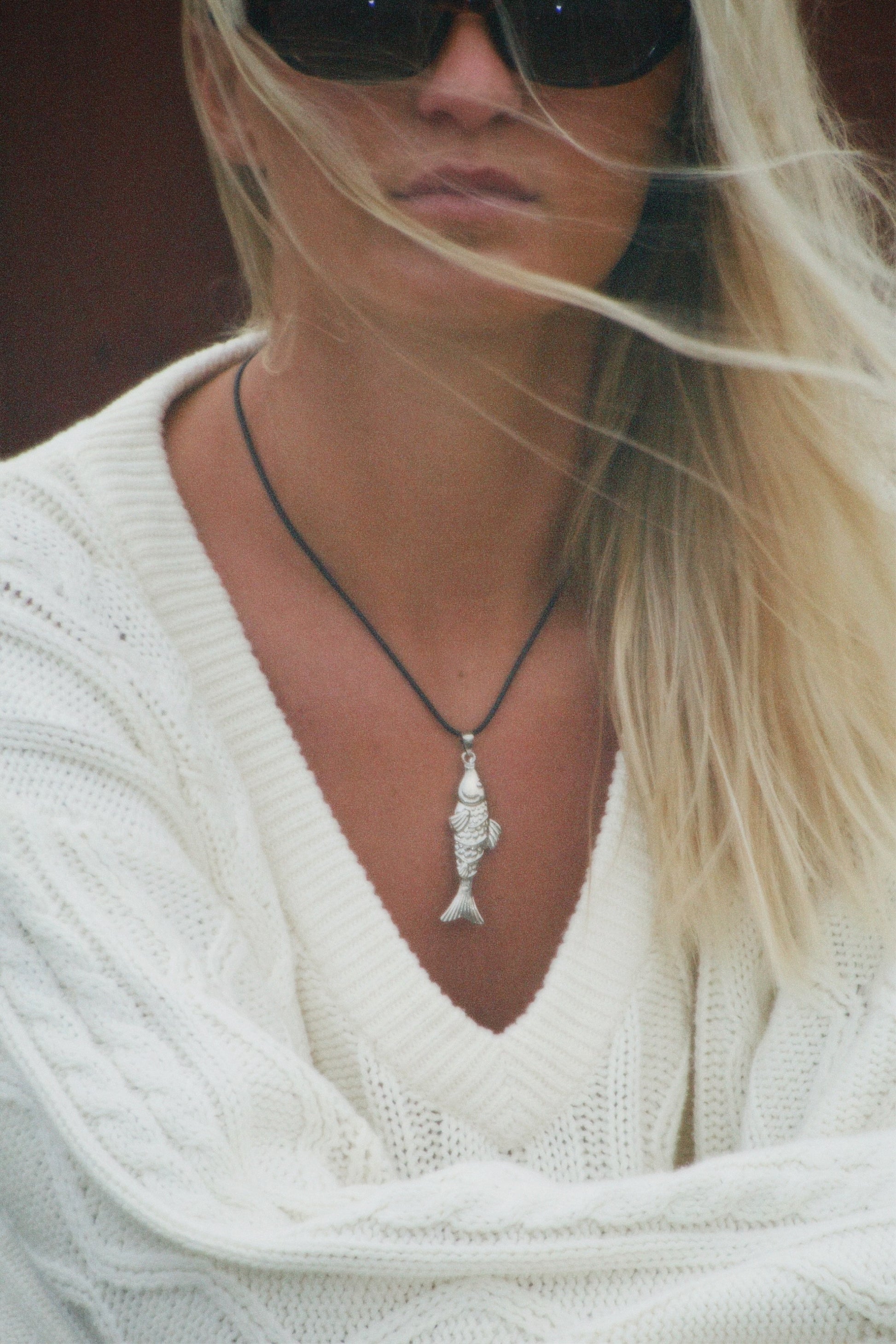 VERBENA - SILVER FISH NECKLACE WITH A BLACK BAND